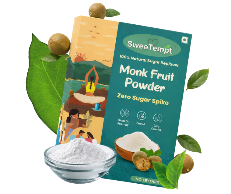 SweeTempt Monk Fruit Sweetener Powder is a natural, zero-sugar alternative to regular sugar, specially crafted for people who want sweetness without health worries.